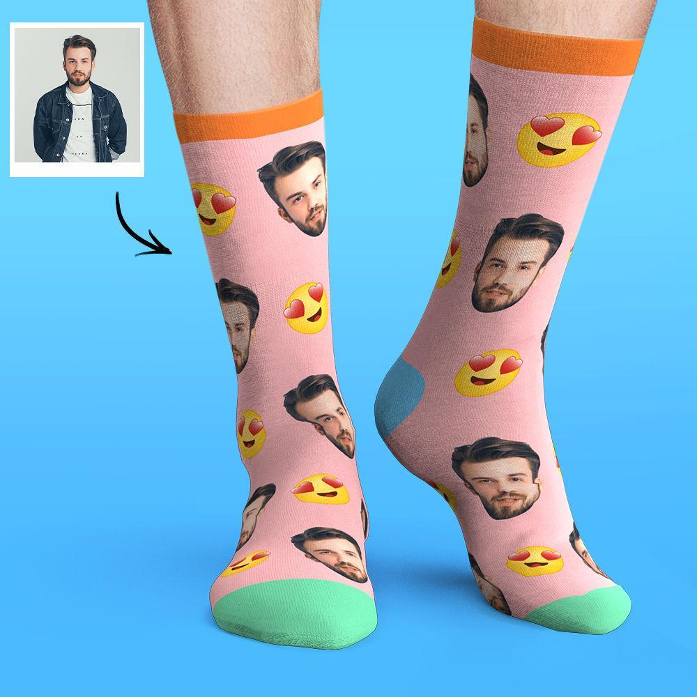 50% OFFCustom Personalized Photo Emoticons Face Socks Love Heart -