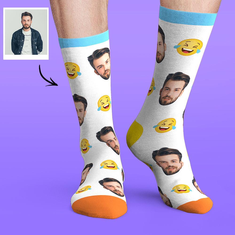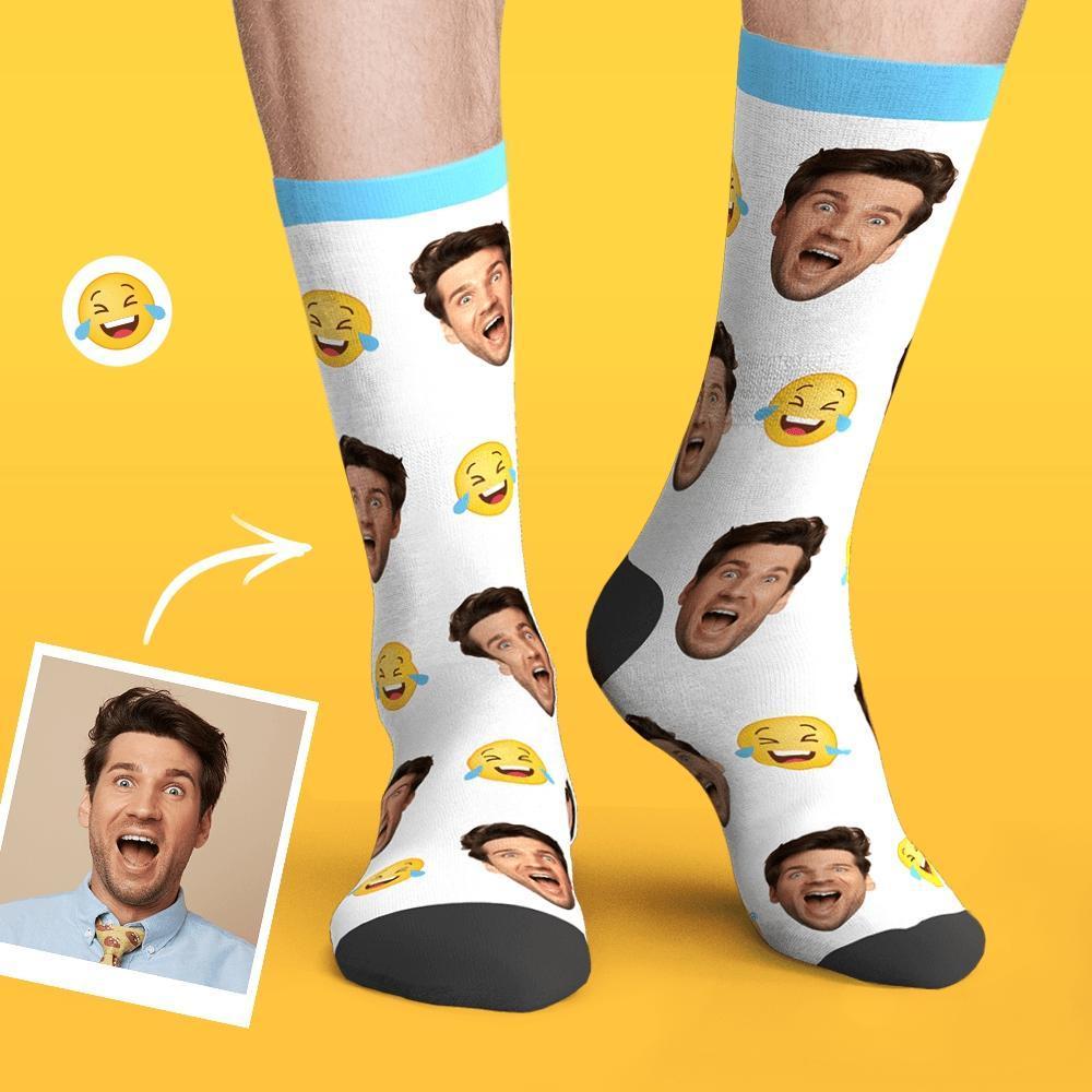 50% OFFCustom Personalized Photo Funny Emoticons Face Socks Smile Through Tears -