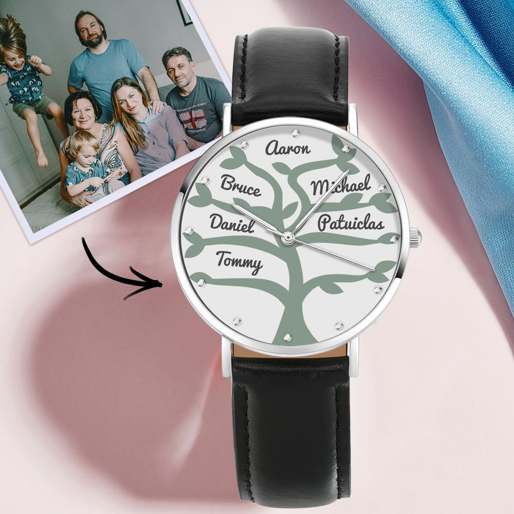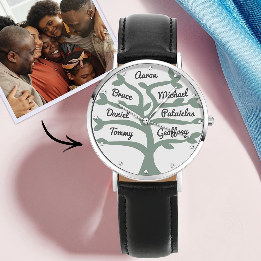 48% OFFCustom Name Watch Black Leather Strap 40mm for Big Family Gifts (1-9 Names) -