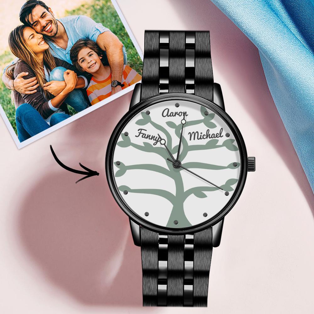 48% OFFCustom Name Watch Black Leather Strap 40mm for Family (1-9 Names) -