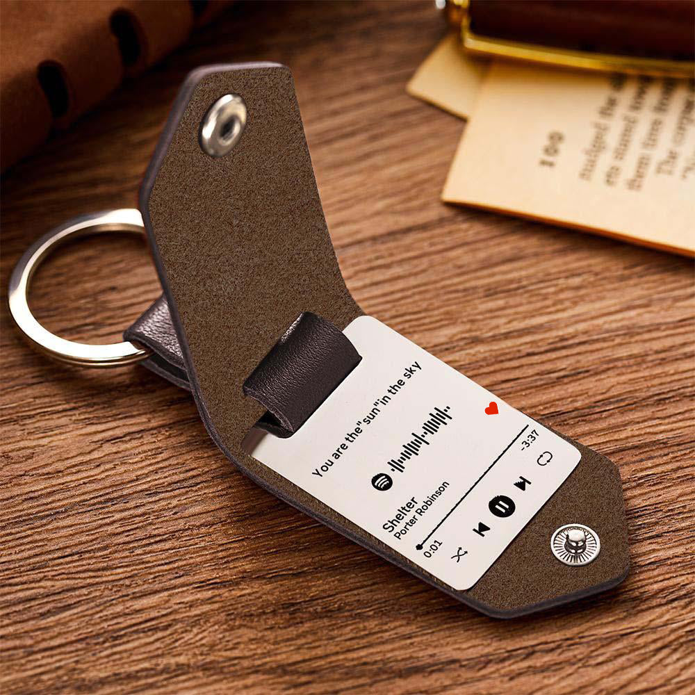 50% OFFScannable Spotify Code Keychain Custom Engraved Music Song Keychains Leather Gifts for Couple -