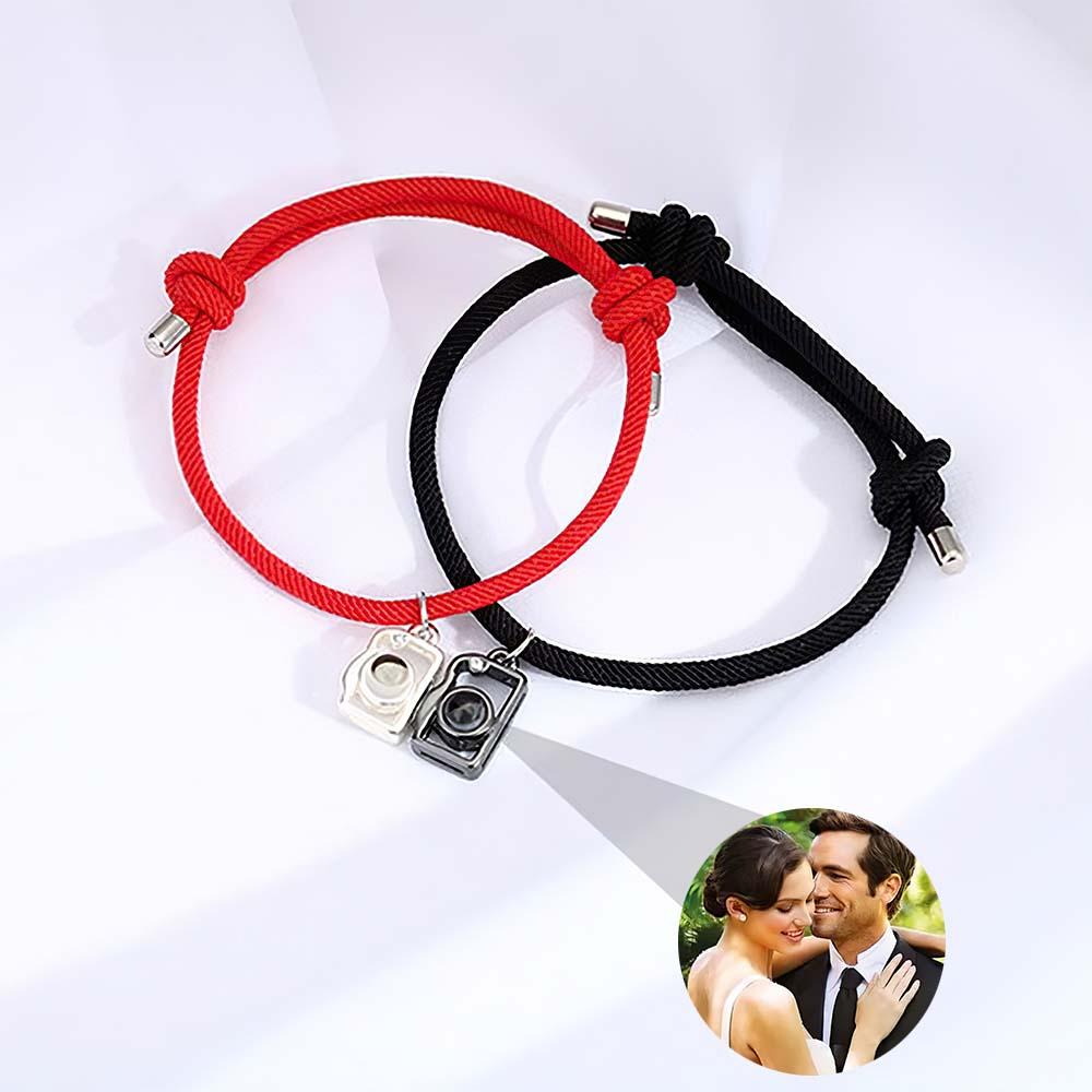 50% OFFPersonalized Photo Projection Couple Bracelet Braided Black Rope Bracelet Gift for Mother's Day -