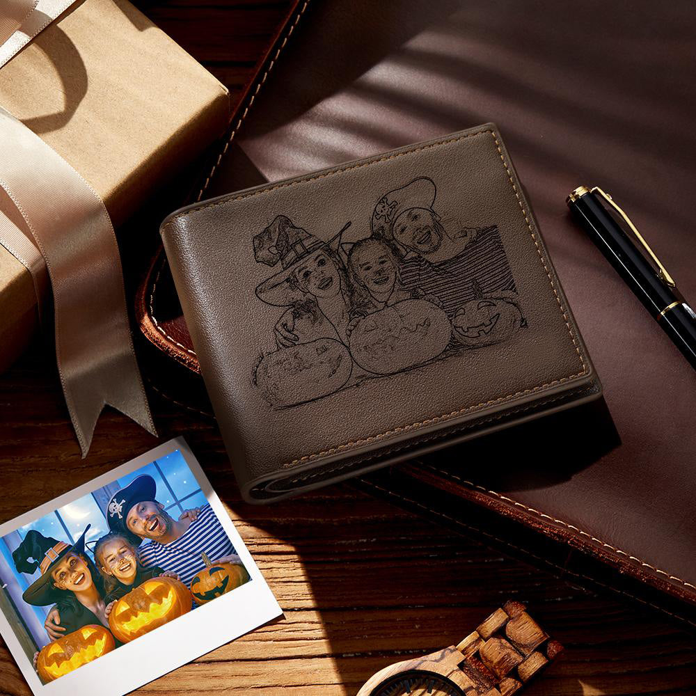 50% OFFMen's Bifold Custom Inscription Photo Engraved Wallet - Brown Leather