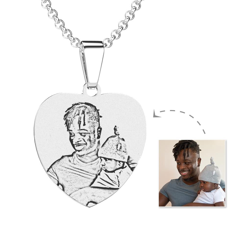 64% OFFWomen's Heart Photo Engraved Tag Necklace With Engraving Stainless Steel Gifts For Family