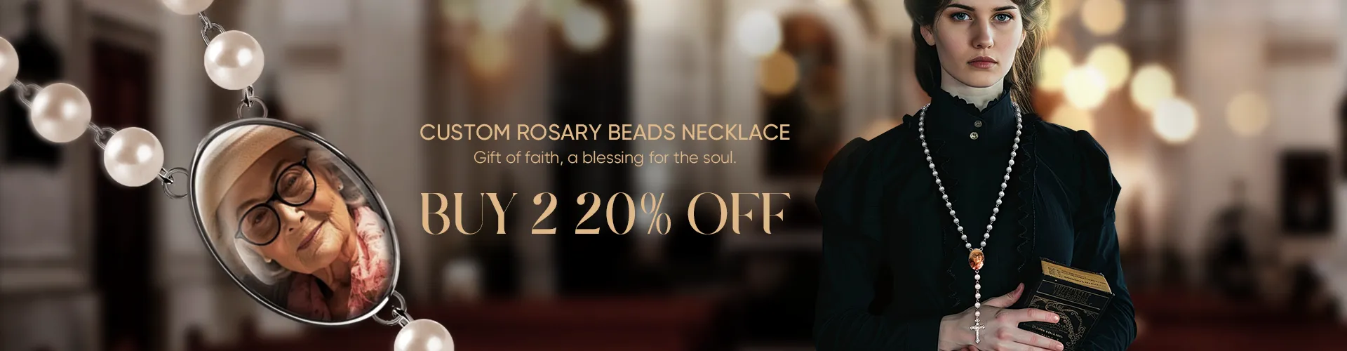 40% OFFCustom Rosary Beads Cross Necklace Personalized Golden Rose Beads Necklace with Photo -