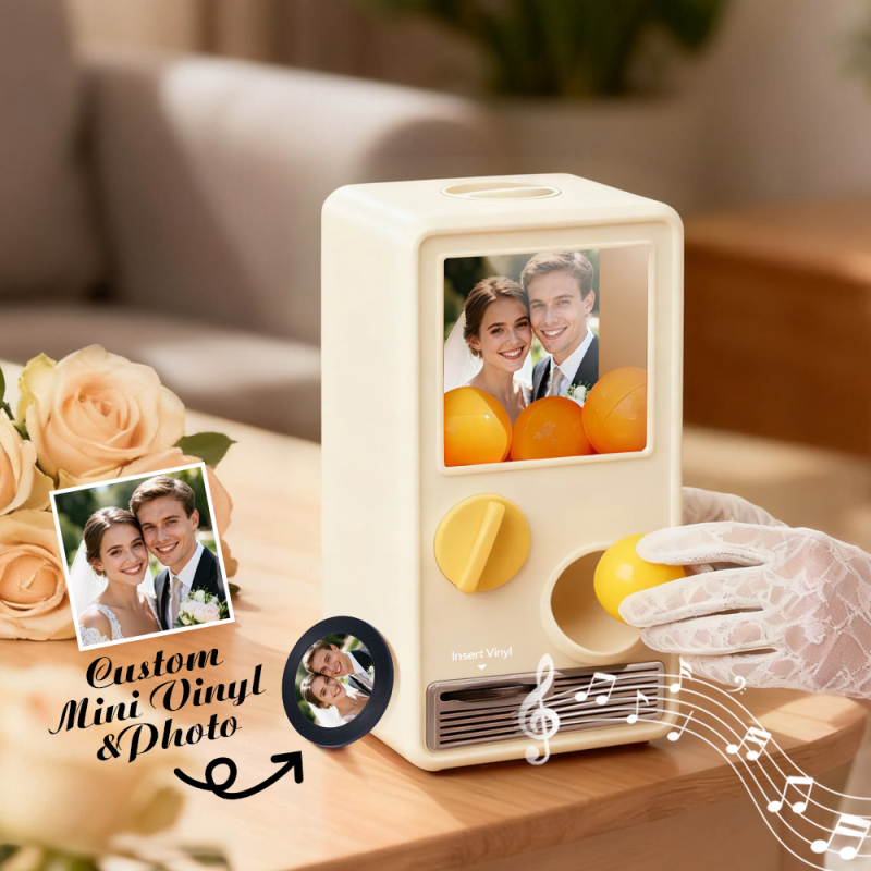 Discover the joy of music and surprise with our Music Gachapon Machine! Modeled after a classic toy capsule dispenser, this charming unit holds up to 7 gachapon balls—each containing a unique, customizable CD record inside. Personalize every disc with a special song and a photo that holds meaning, then let the machine bring your creations to life with instant playback.