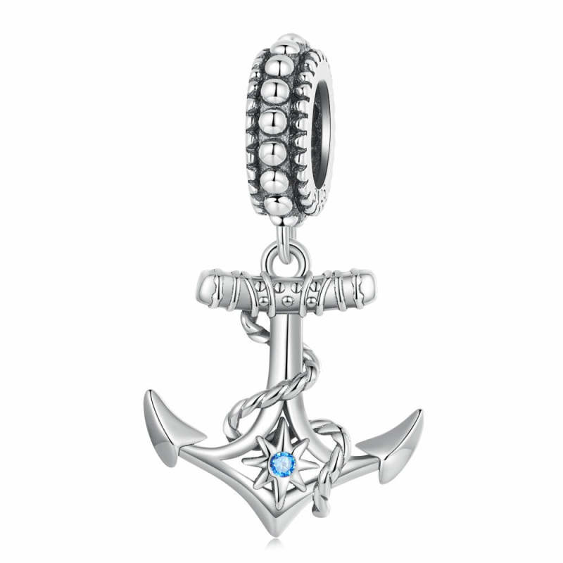 Anchor with Blue Star Dangle Charm Silver