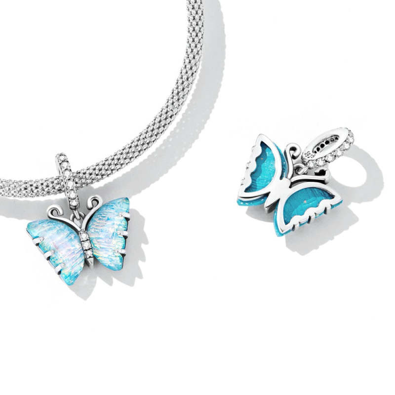 Aurora Butterfly Dangle Charm Silver