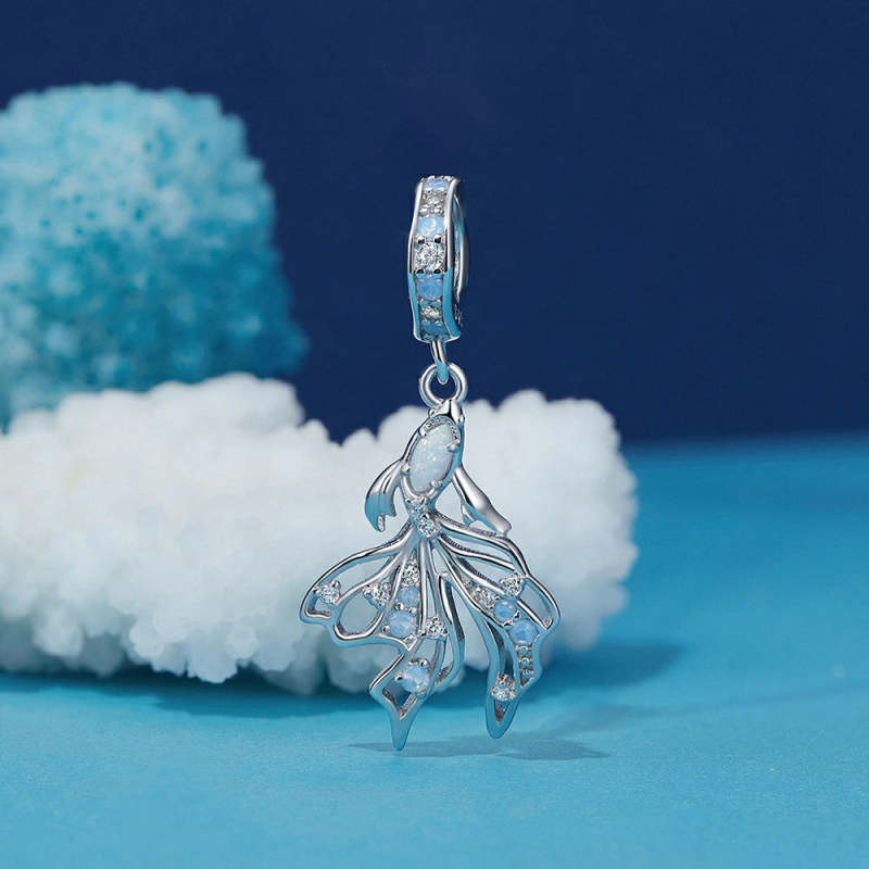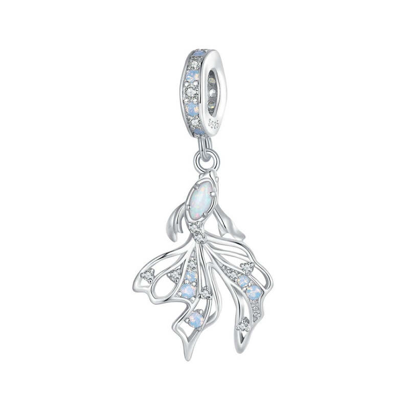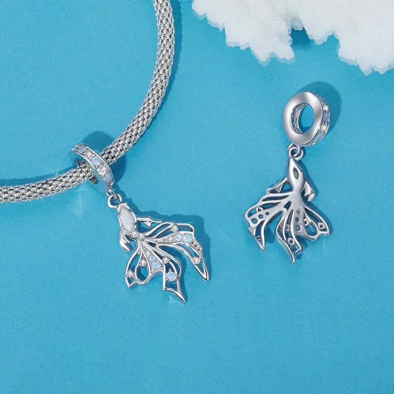 Betta Fish Dangle Charm Silver
