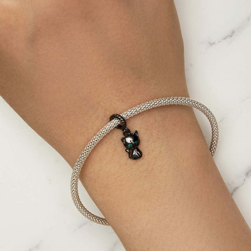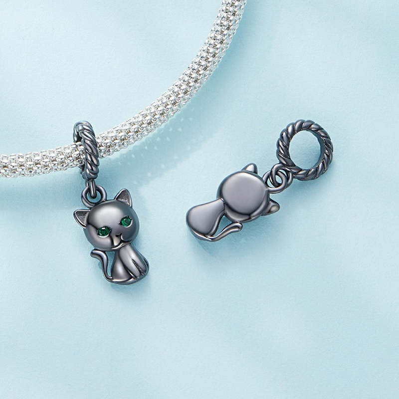 Black Cat Dangle Charm Silver