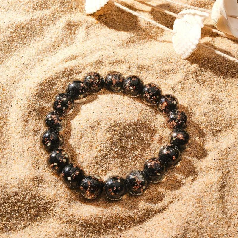 Black Firefly Glass Stretch Beaded Bracelet Glow in the Dark Luminous Bracelet