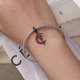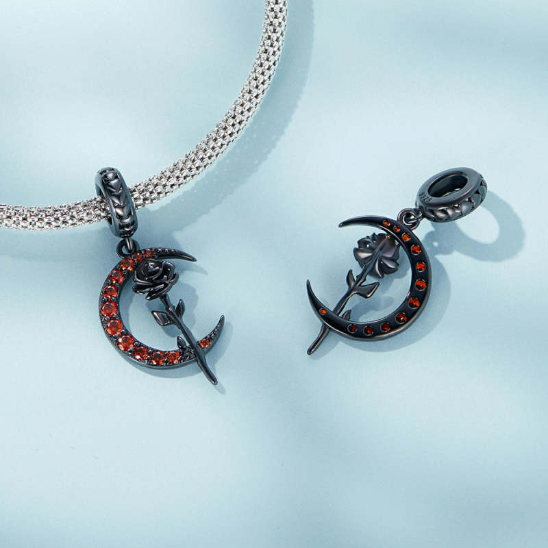 Black Rose and Moon Dangle Charm Silver