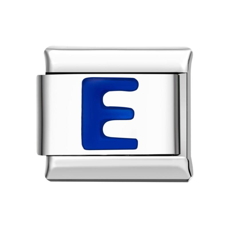 Blue E Italian Charm For Italian Charm Bracelets Composable Link
