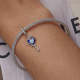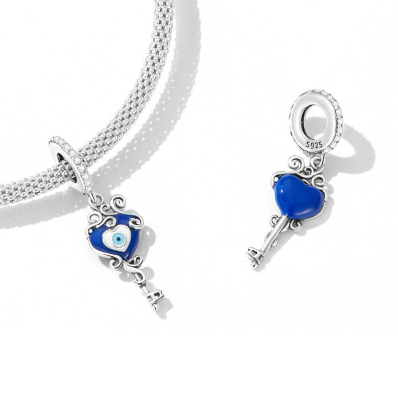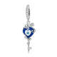 Blue Heart Evil Eye Dangle Charm Silver