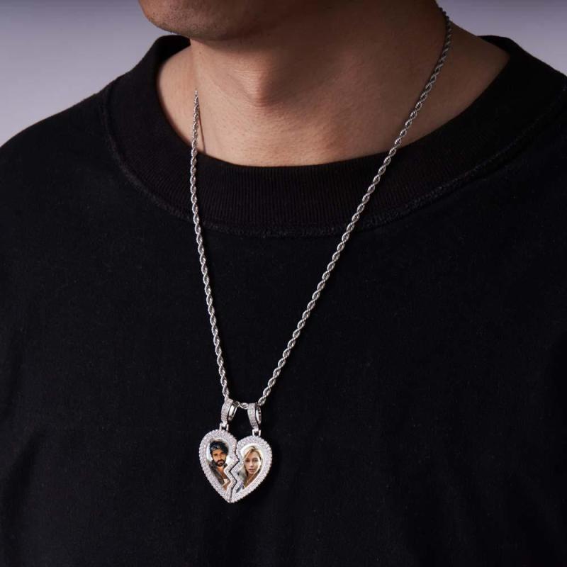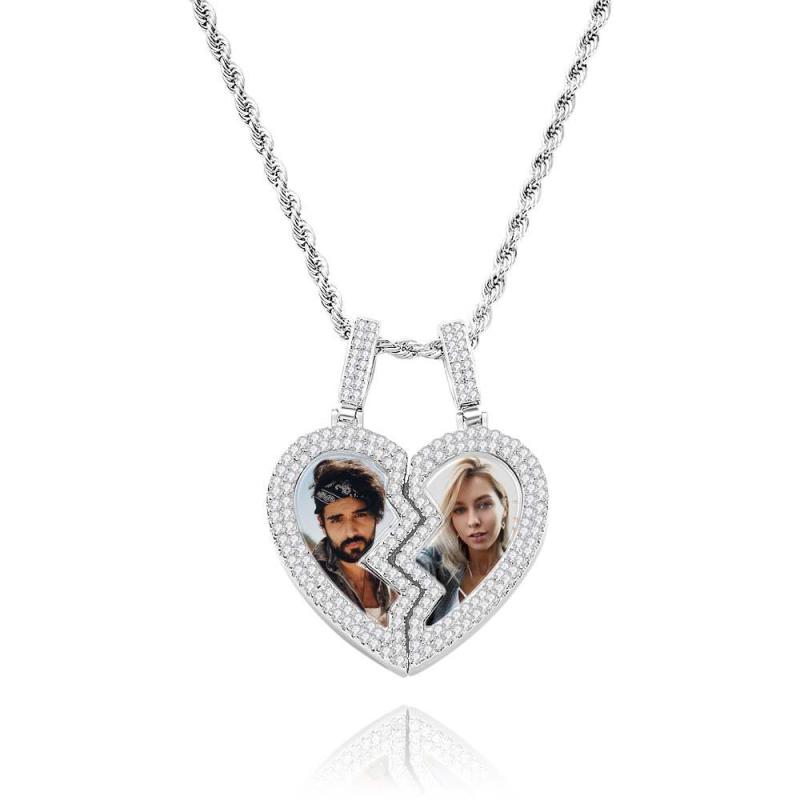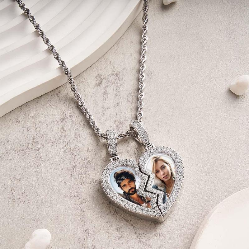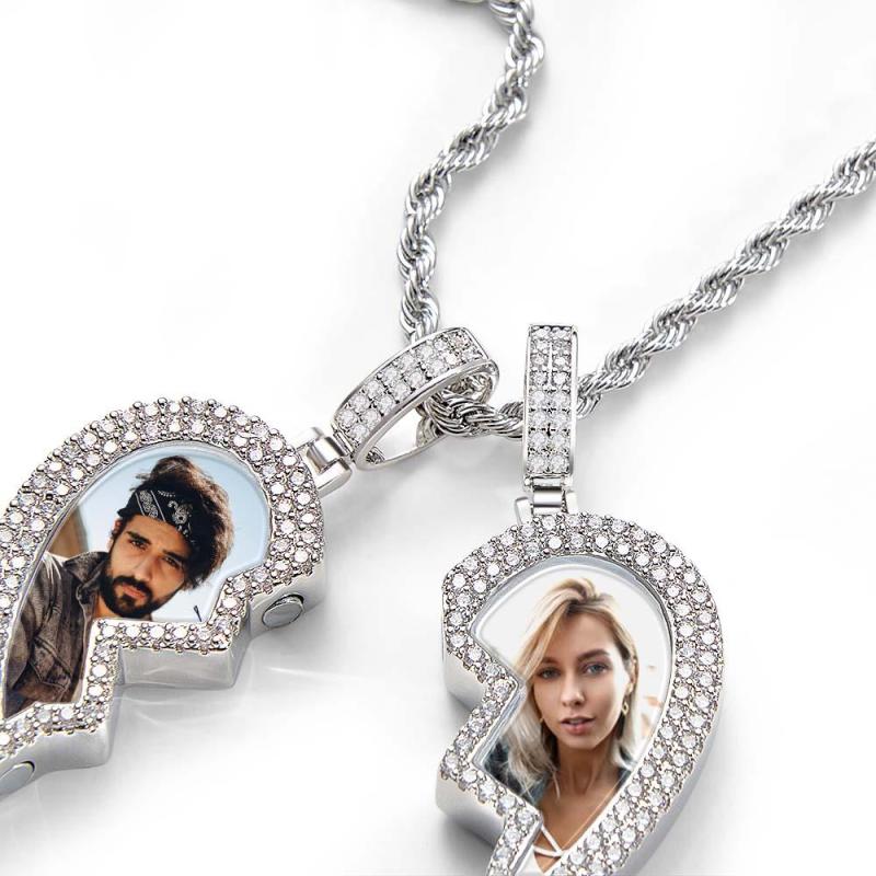 "Broken Heart" Magnetic Frame Necklace with Dual Photo Pendant