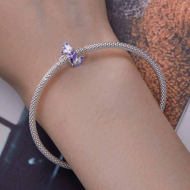 Butterflies Stopper Charm Spacer Charm Silver