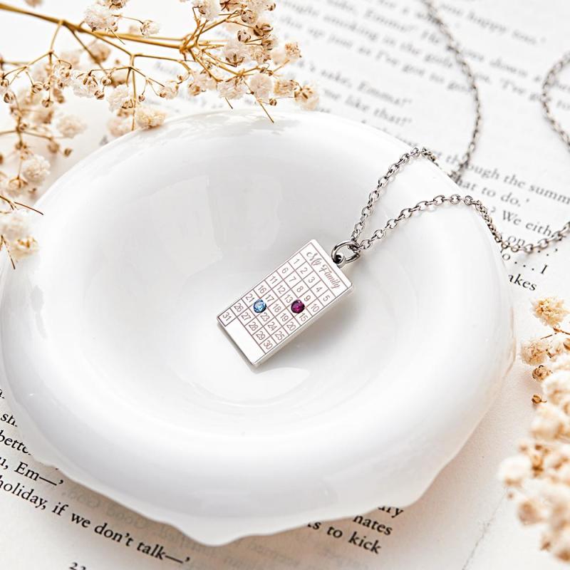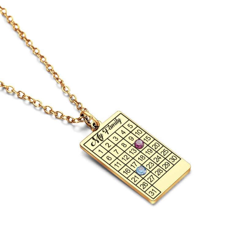 Calendar Necklace with Birthstone Gold Wedding Date Necklace Customized Calendar Gift for Her