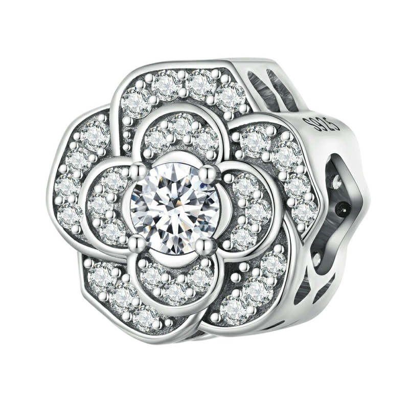 Camellia White Zircon Charm Silver