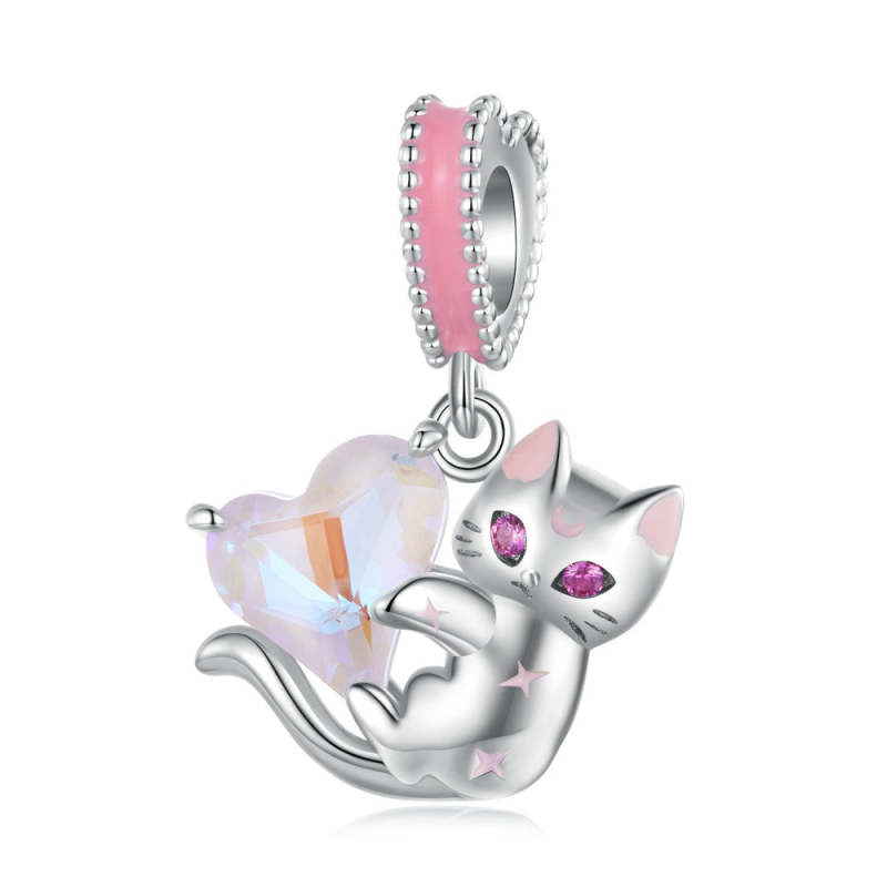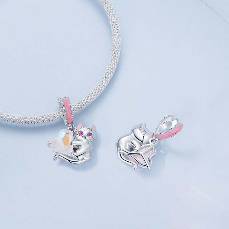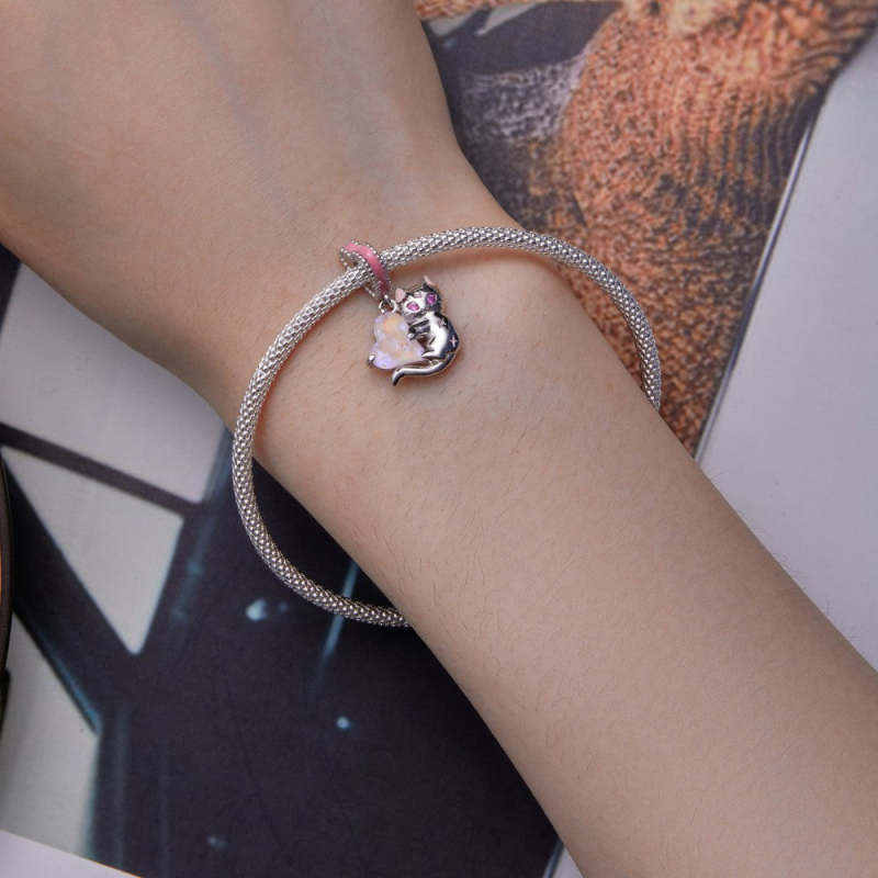 Cats and Hearts Dangle Charm Silver