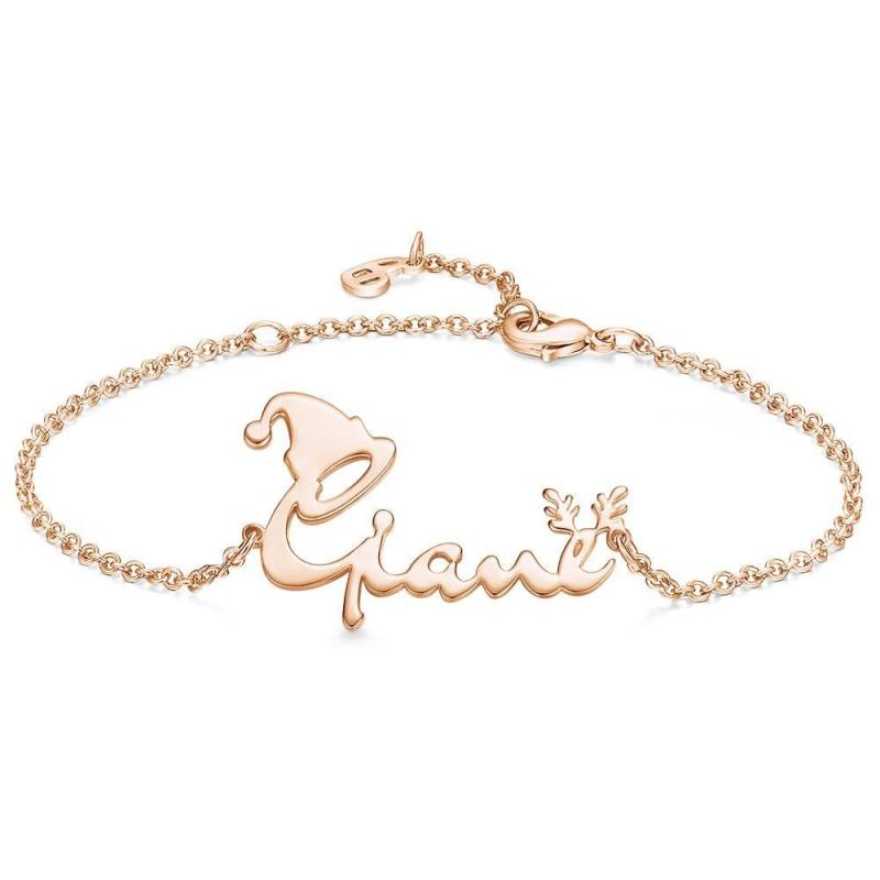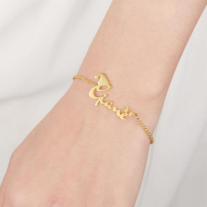 Christmas Gifts Custom Name Bracelet with Christmas Hat and Antlers Perfect Gift 14k Gold Plated Silver