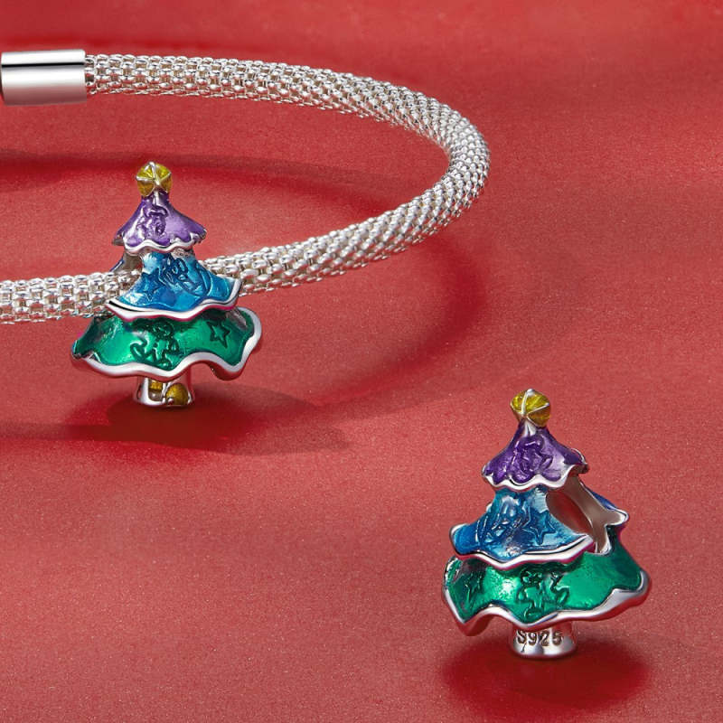Christmas Tree Enamel Charm Silver Christmas Gifts