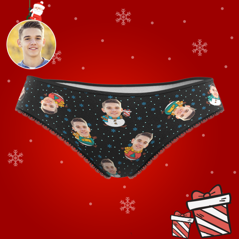 Custom Face Christmas Underwear, Cute Christmas Snowman Face Underwear, Best Christmas Gift For Girfriend