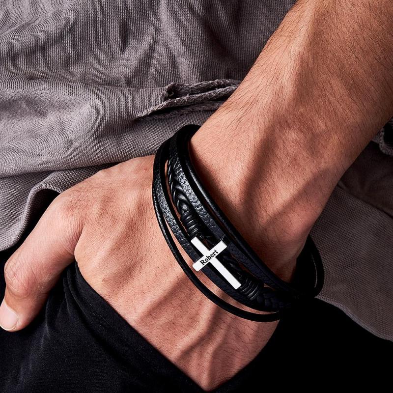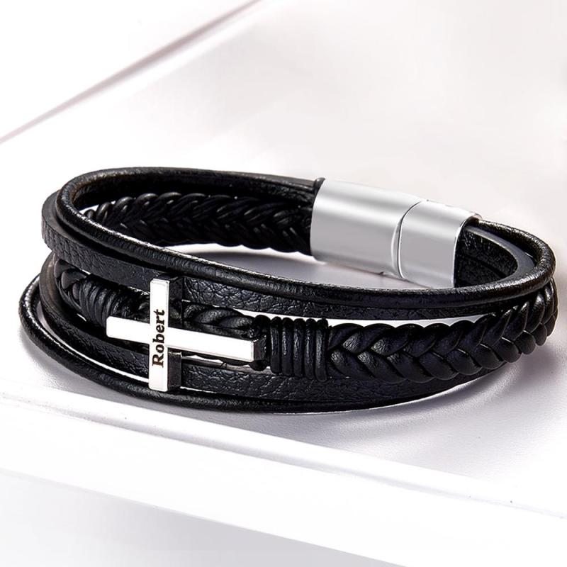 Inspirational Mens Leather bracelet with Stainless Cross made of high quality genuine leather, it has a strong and very easy to use magnetic clasp. The bracelet is about 21cm length, This bracelet is a great reminder to stay calm and to trust God in the midst of turmoil happening in this world. Do not be afraid - God is with us! This simple black bracelet is super easy to wear! It looks great with both casual or dressy outfits, adding a final, stylish touch for a finished, clean, modern look. And this is not only a practical but a beautiful way of carrying a thought or piece of inspiration with you. Perfect gift item! Limited edition, grab one before we run out!