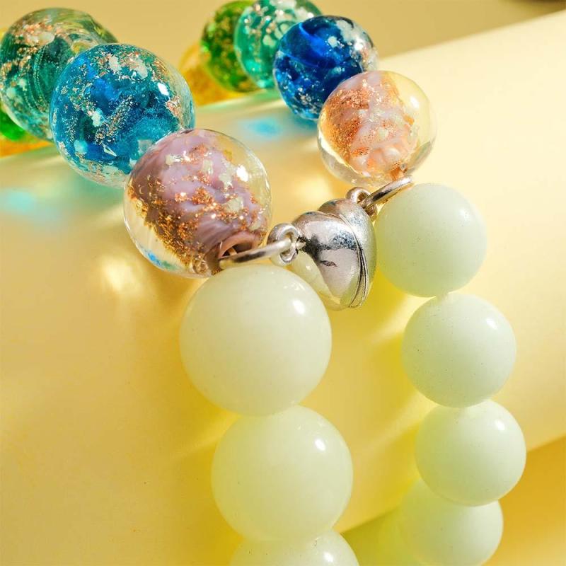 Colorful Couple's Firefly Glass Stretch Beaded Bracelet Glow in the Dark Luminous Bracelet