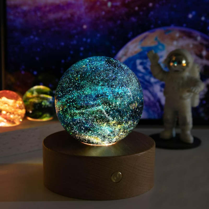 Our mesmerizing starry planet lamps come with a sleek and simple wooden base, yet elevate any space it is placed within. Place each crystal ball on the LED wooden base, connect the power supply, and turn on the switch. The light is on. You can have a feeling of being in the starry sky, which can bring harmony and balance into your life. Decorate your room and interior with these unique and beautifully-crafted lamps. Perfect gift for a loved one or yourself.