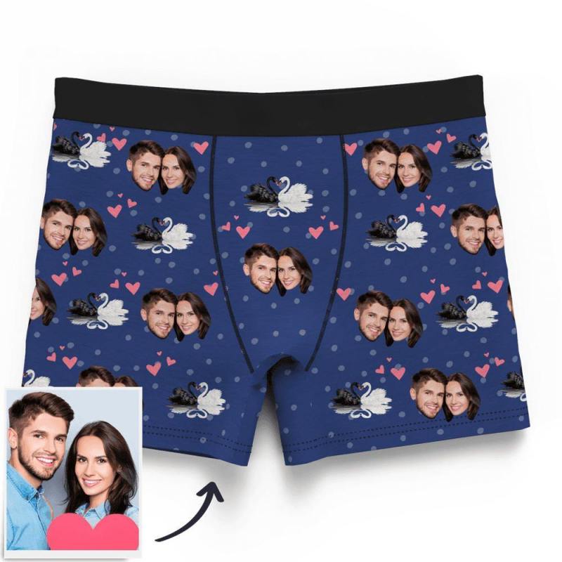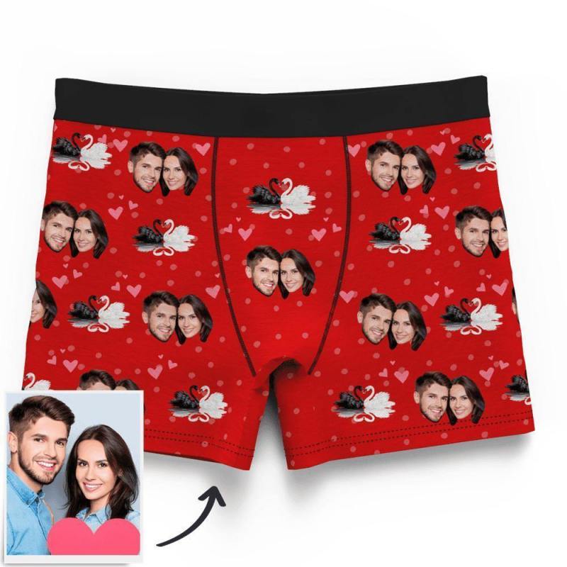 Couple Custom Swan And Face on Boxer Shorts Men's
