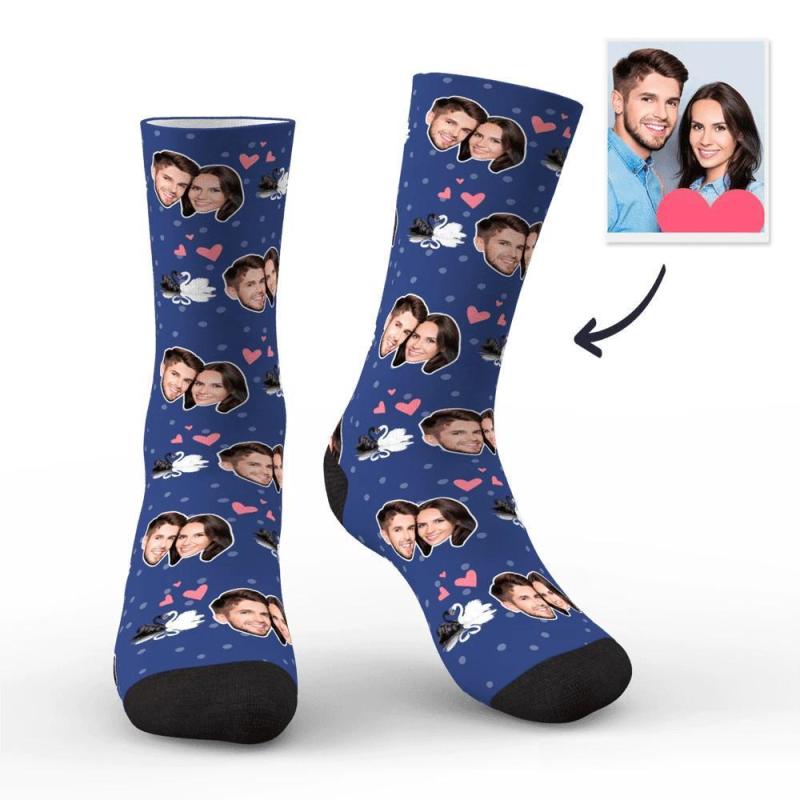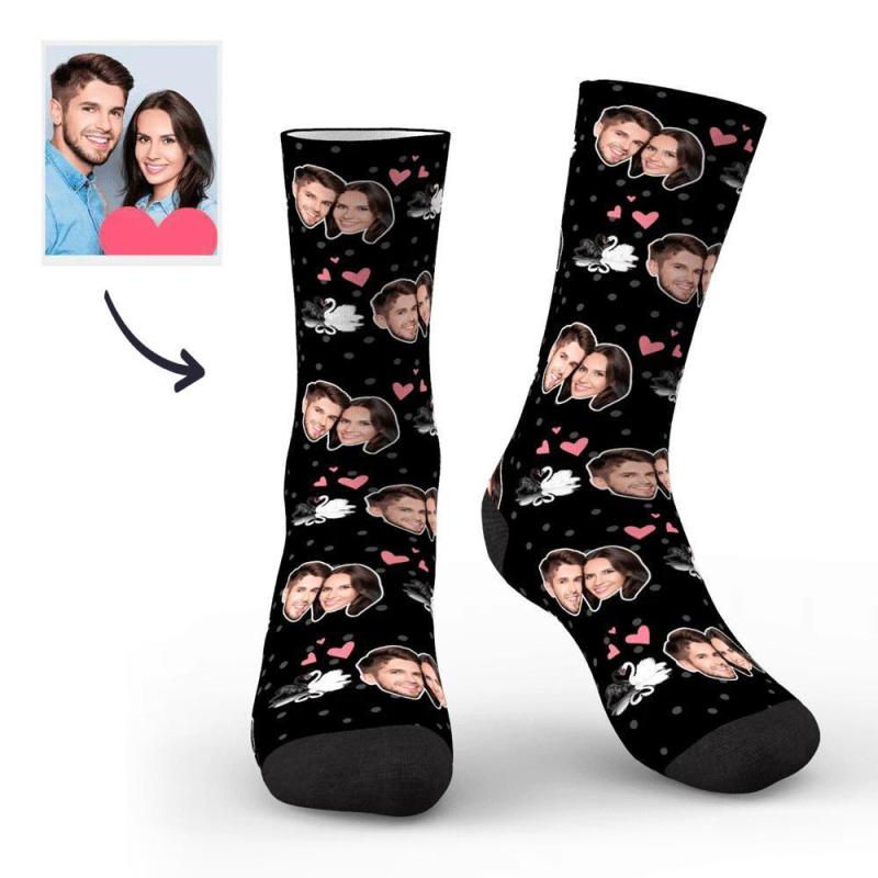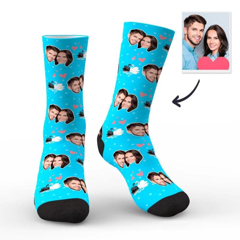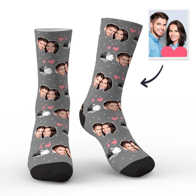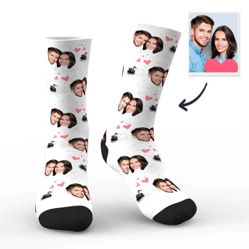 Couple Custom Swan And Face On Socks