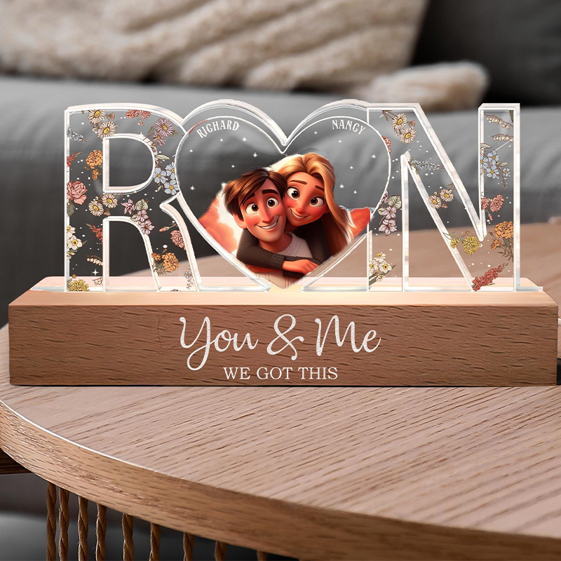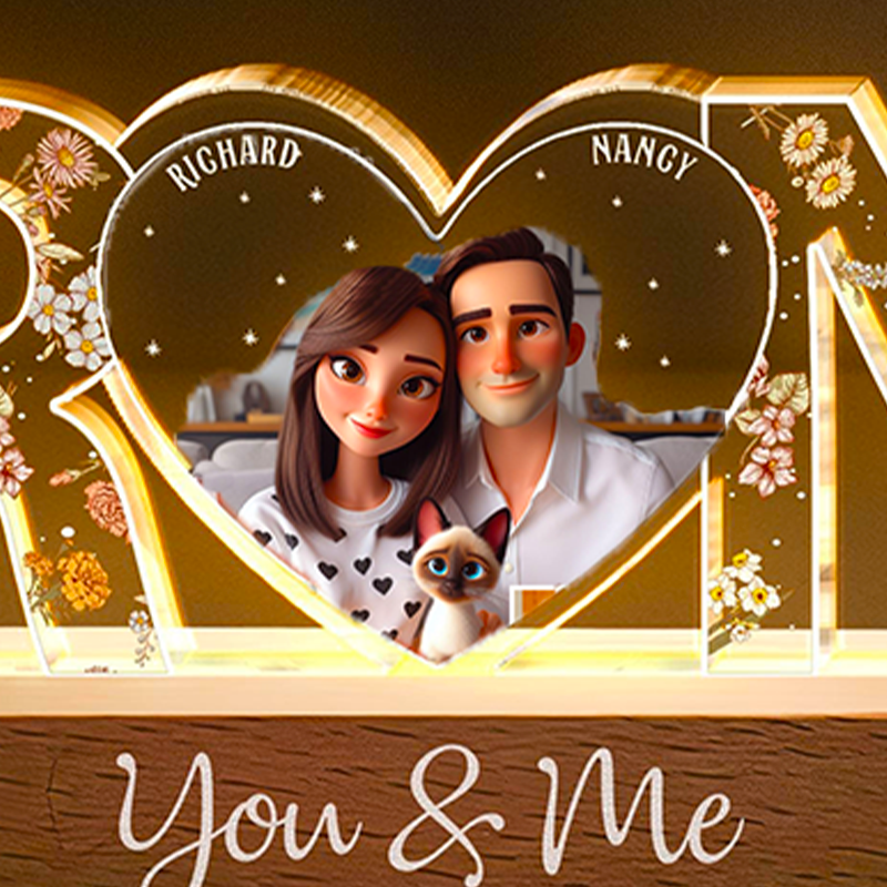 Personalized LED night lights show love, perfect for couples! Whether you're buying it for an anniversary, Valentine's Day or a special occasion, this custom nightlight is a beautiful and thoughtful gift. "You and Me" is printed on the base, and you can customize the text below.