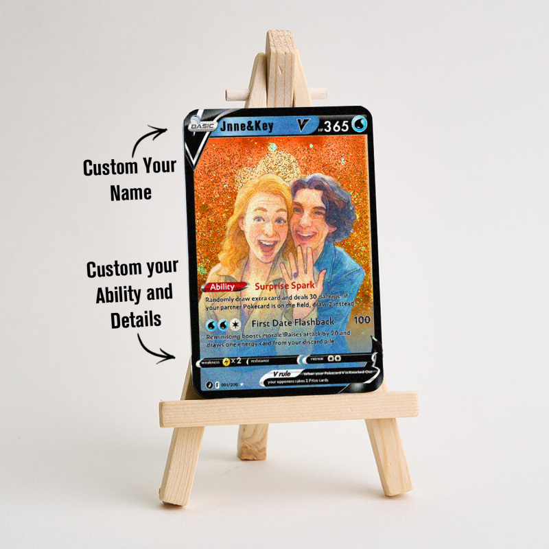 Celebrate your love with our Custom Anime 3D Floating Sand V Pokecard For Couples! This one-of-a-kind keepsake blends anime charm, 3D floating sand art, and Pokecard flair, perfect for couples who share a passion for pop culture.