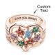 Custom Birthstone Engraved Rings Creative Flowers Rose Gold Gifts