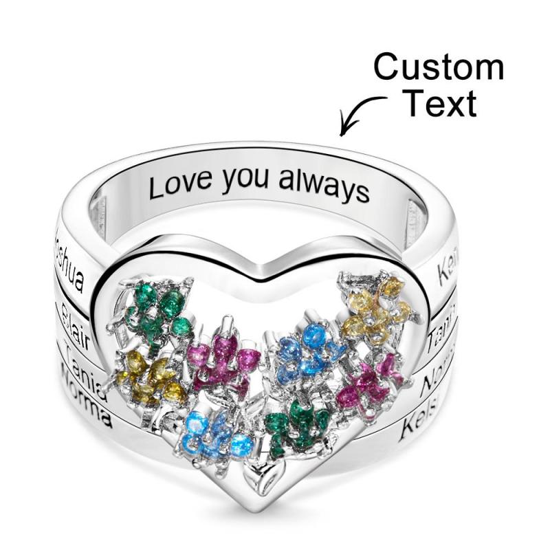 Custom Birthstone Engraved Rings Creative Flowers Silver Gifts