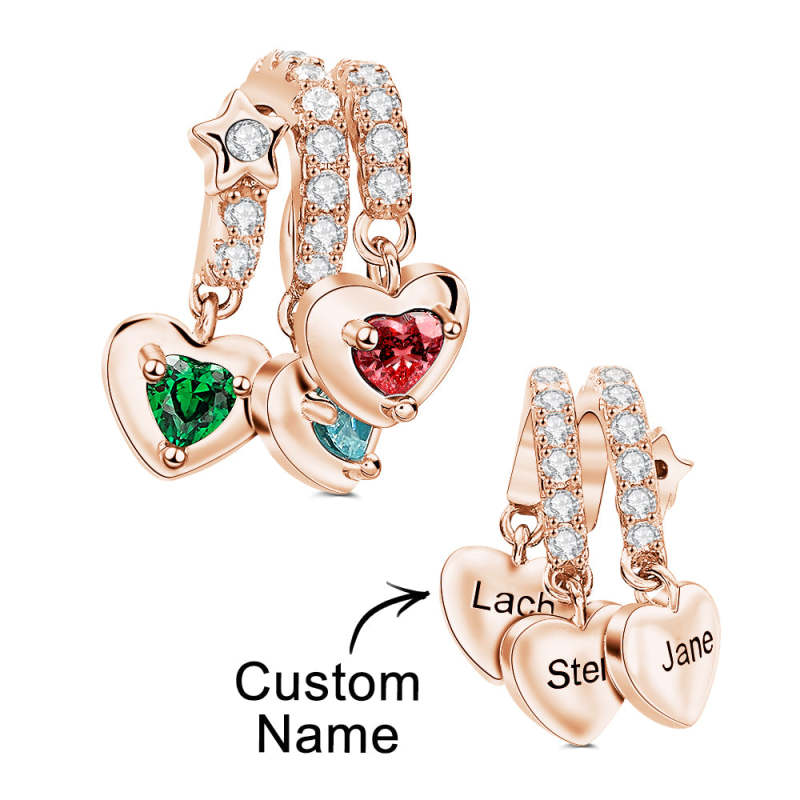 Custom Birthstone with Personalized Names Charm Heart Wings Gifts for Mom