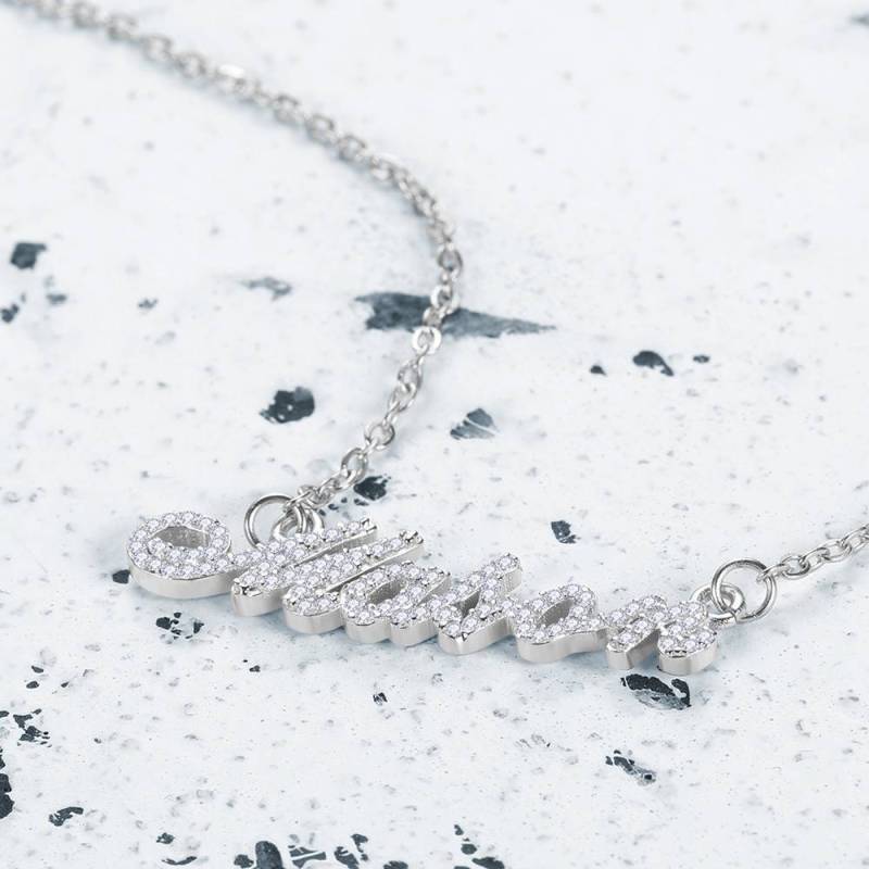 A wonderful gift for someone special, and a fantastic addition to your own jewelry collection! Our Name Necklace with Crystals, lets you personalize in a bold, unique way. With the name or word of your choice in capital letters, it features sparkling crystals that catch the light beautifully.These personalized necklaces are made with sterling silver, copper and come complete with a matching rolo chain, which is carefully attached to each end of the central pendant for a perfectly balanced look. Soufeel has a ton of customized jewelry options that are reasonably priced and make for great gifts for all sorts of occasions like birthdays, holidays, anniversaries. Custom Crystal Name Necklace, Keepsake Jewelry Silver.
