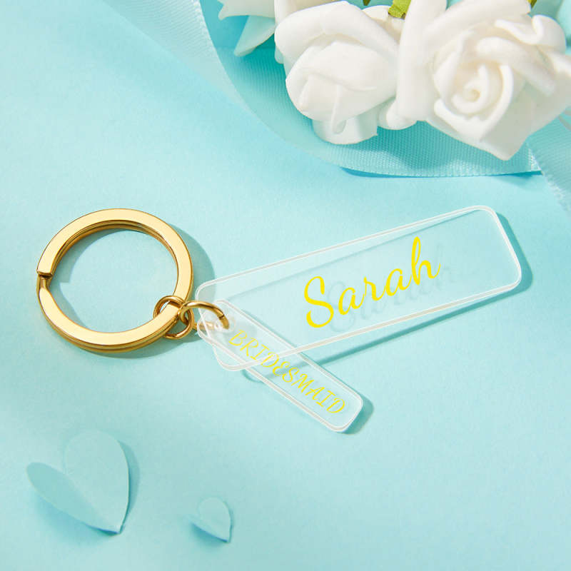 This Keychain can customize the text. You only need to input your favorite copy or name, and we will make it beautifully according to your needs. This key chain is made of acrylic material, which is small, exquisite, and characteristic. Suitable for lovers, friends, and lovers.