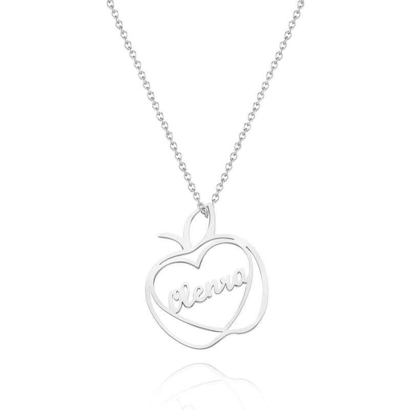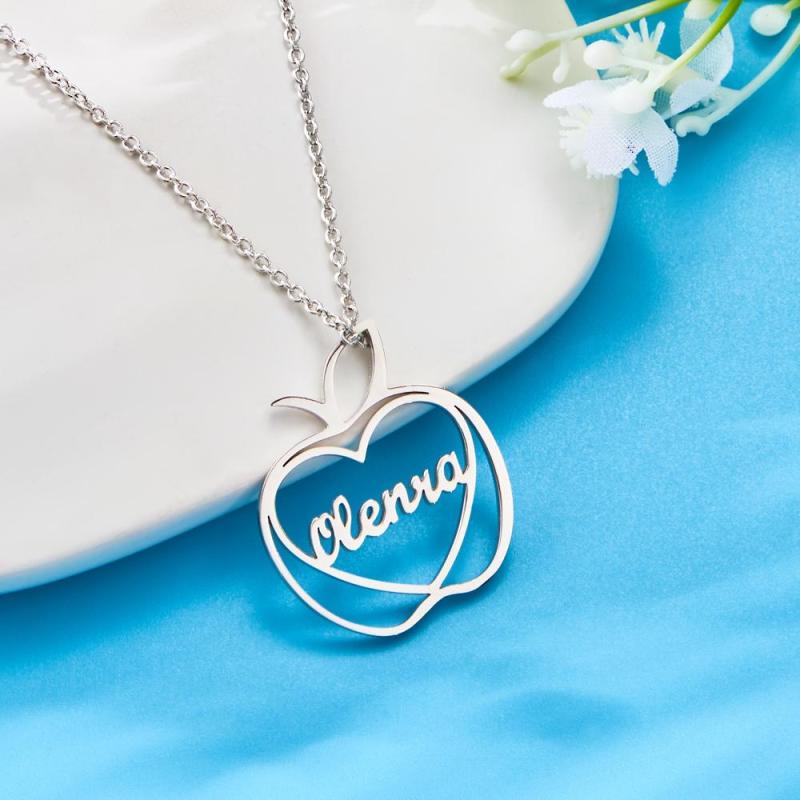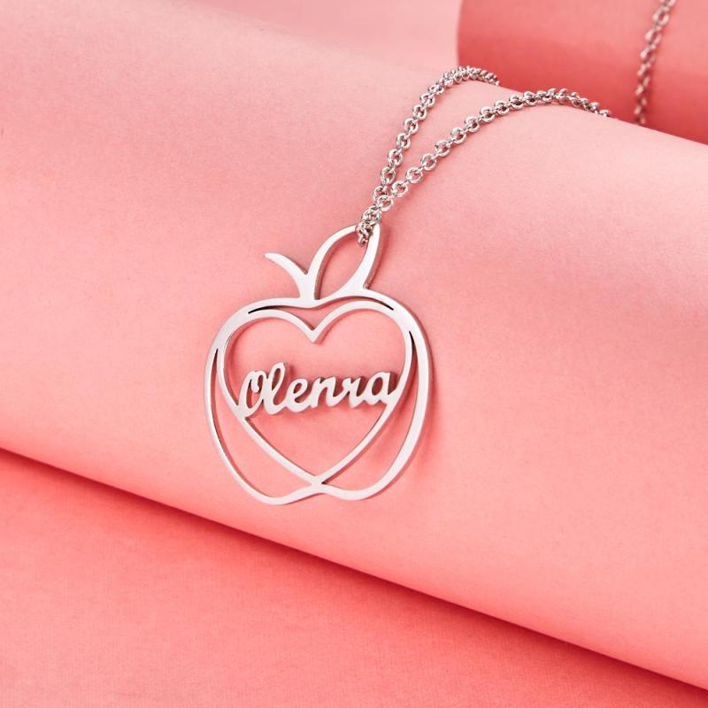 There is an apple element on the necklace. A heart is linked in the middle of the apple. Your name or the name you want to write is engraved inside to create a unique name necklace. This necklace is made of copper, with smooth surface, moderate chain length and comfortable wearing. You can wear it for parties, shopping, dating and other occasions. Suitable for family, friends and best friends.