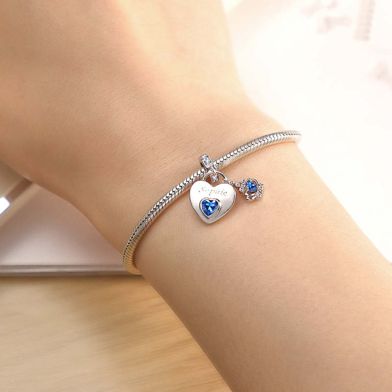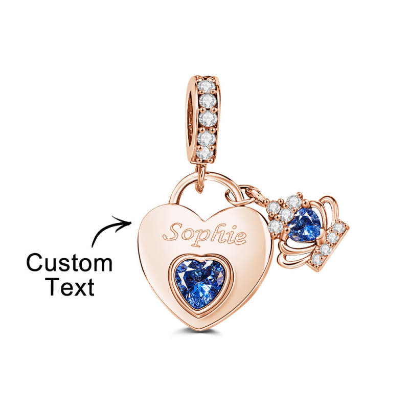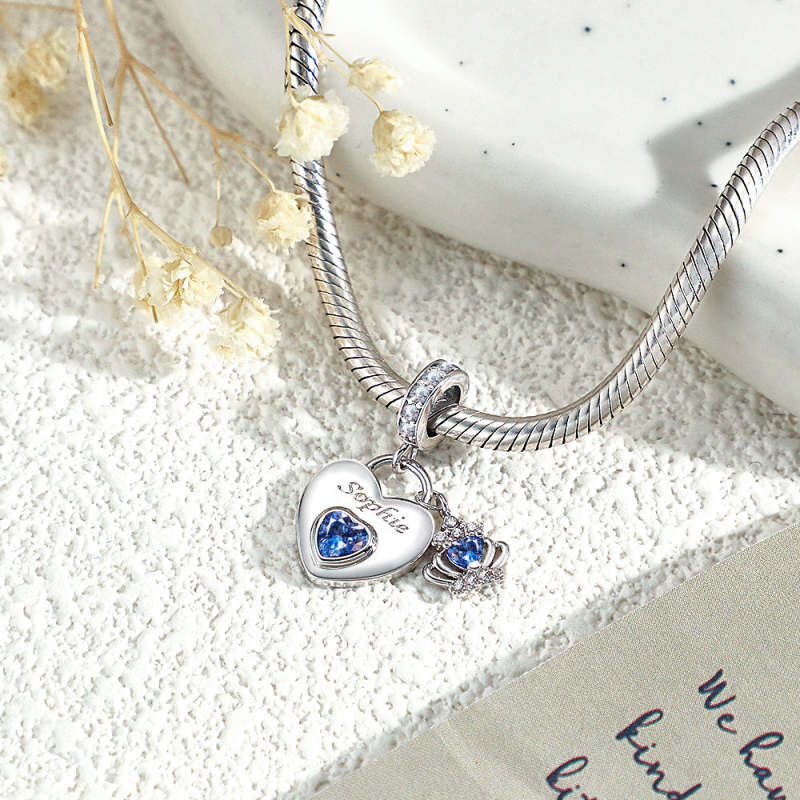 Custom Engraved Birthstone Charm Heart Crown Pendant Love Gift