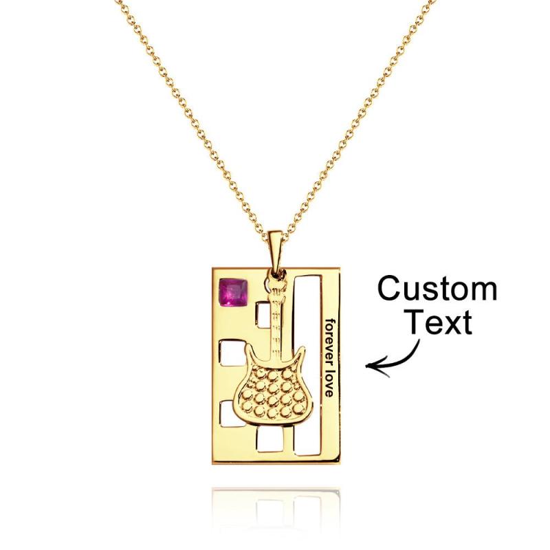 Custom Engraved Birthstone Necklace Forever Love Guitar Music Gifts