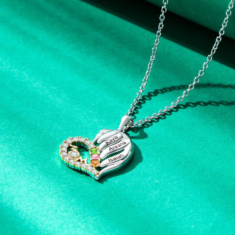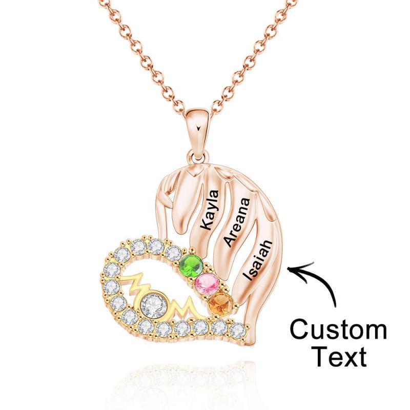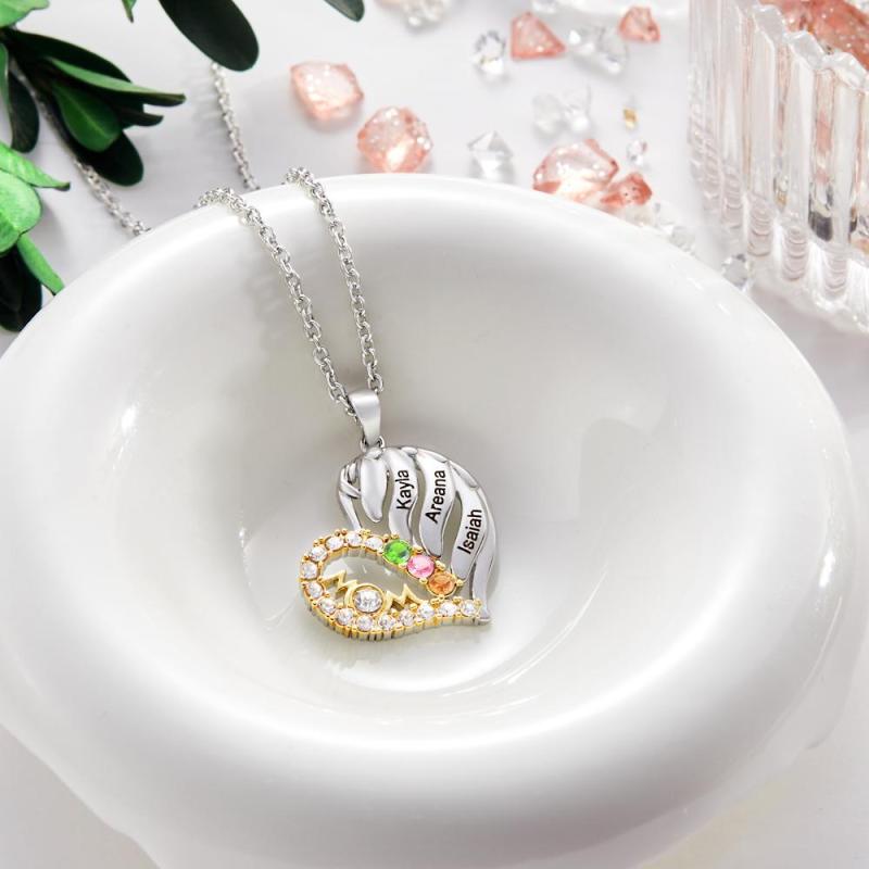 Custom Engraved Birthstone Necklace Heart Pendant Necklace Gift for Mom