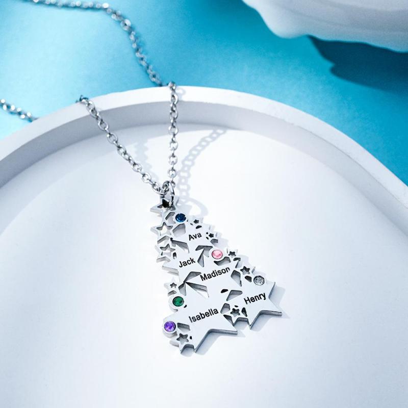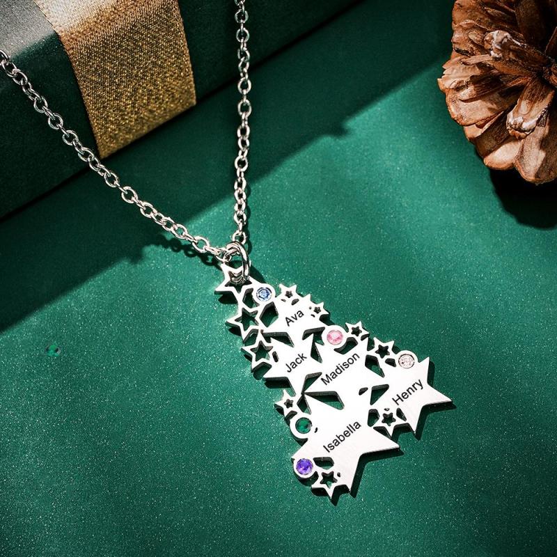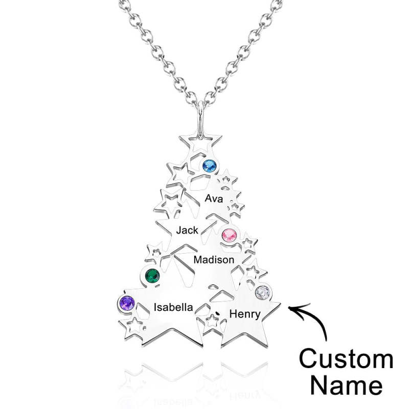 Custom Engraved Birthstone Necklace Star Christmas Tree Gifts