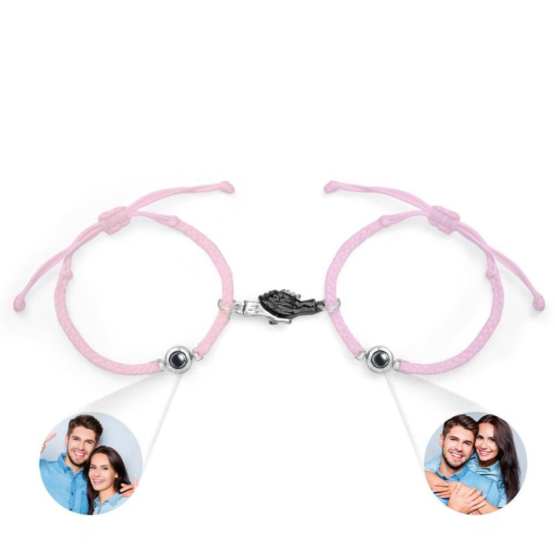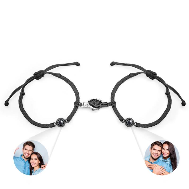 Custom Engraved Bracelet Magnetic Shake Hands Couple Gift