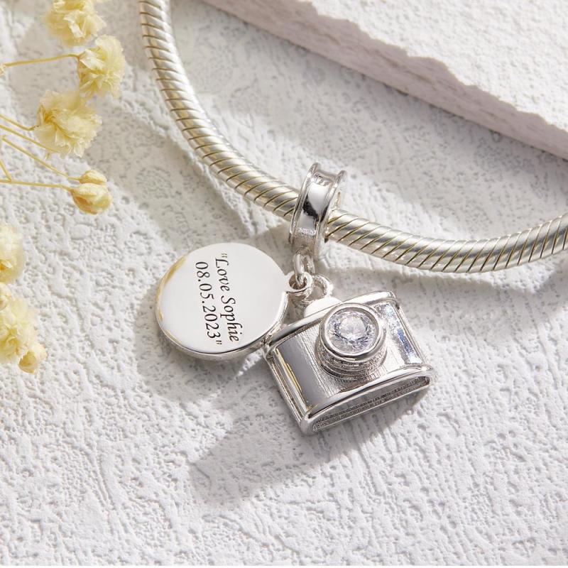 Custom Engraved Charm Diamond Camera Fashion Gift