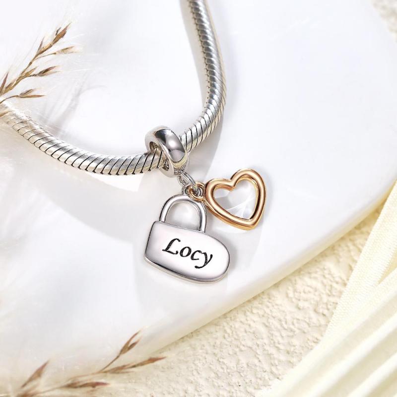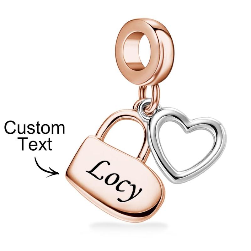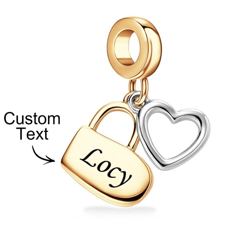 Custom Engraved Charm Love Lock Pendant Couple Gift