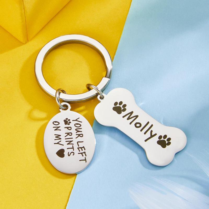Custom carved dog bone key chain souvenir pet keychain gift, this key chain has two parts, one is a dog bone, you can customize your pet's name on the dog bone, you can also customize the words you want to say to your pet on the small disc. If you really love your pet, you can customize your pet's unique key chain.