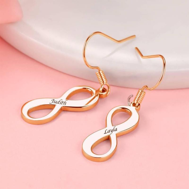 Soufeel engraved earrings deserve a spot in every woman’s jewelry box! There is a vast assortment of earrings to choose from so that there is something for every style personality or occasion. For a great pair of everyday earrings, you can’t go wrong with this pair of engraved earrings. For those who love to make a statement, ear jackets and drop earrings are a great way to go. There are also a variety of colors to choose from for those who are into birthstone jewelry or for those who are looking for a great birthday gift for a friend or family member.Custom Engraved Earrings Name Drop Earrings with Infinity Earrings Rose Gold Plated.
