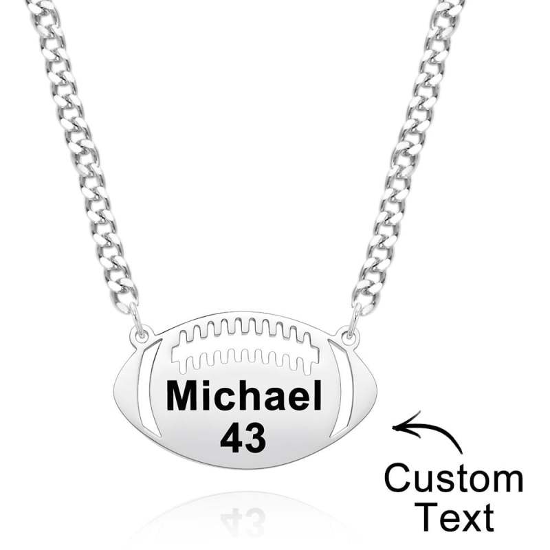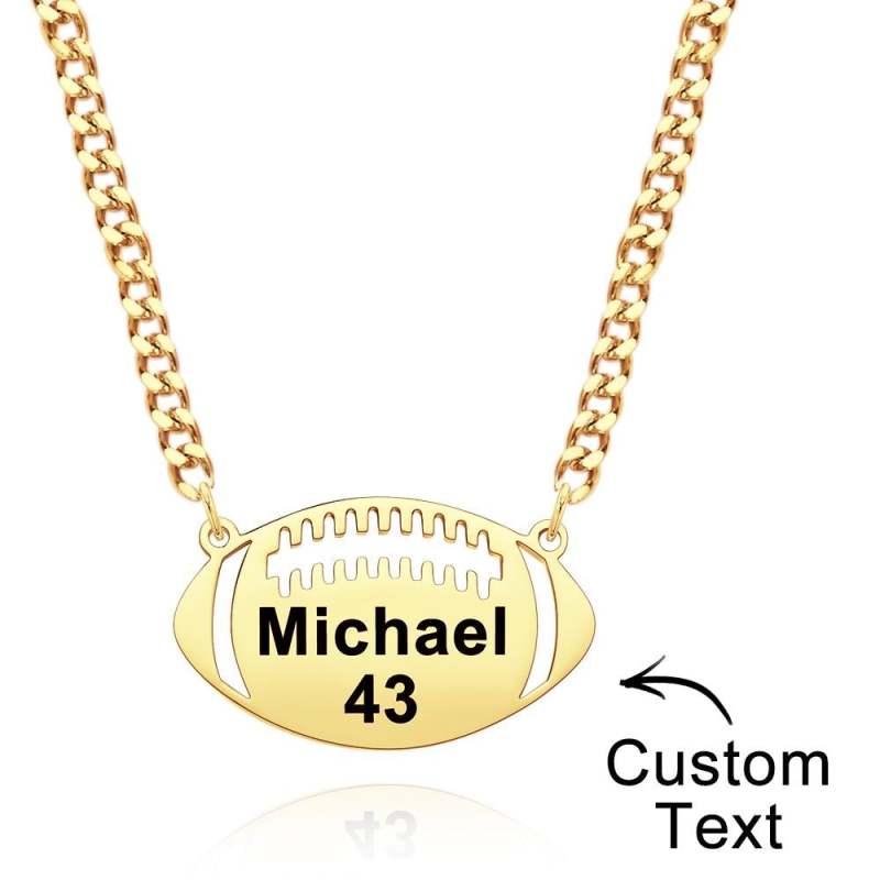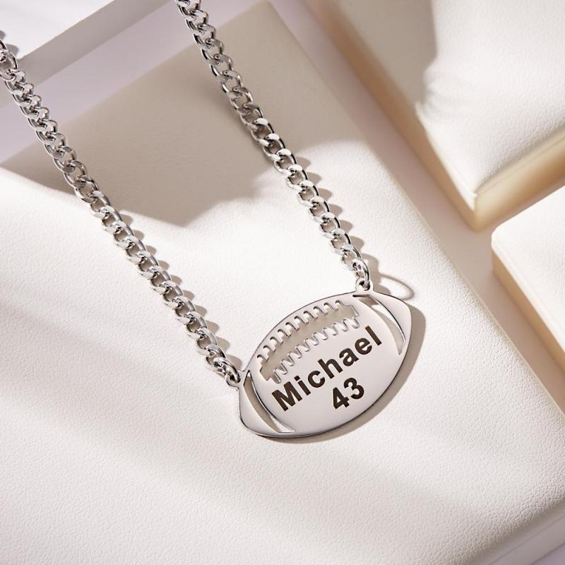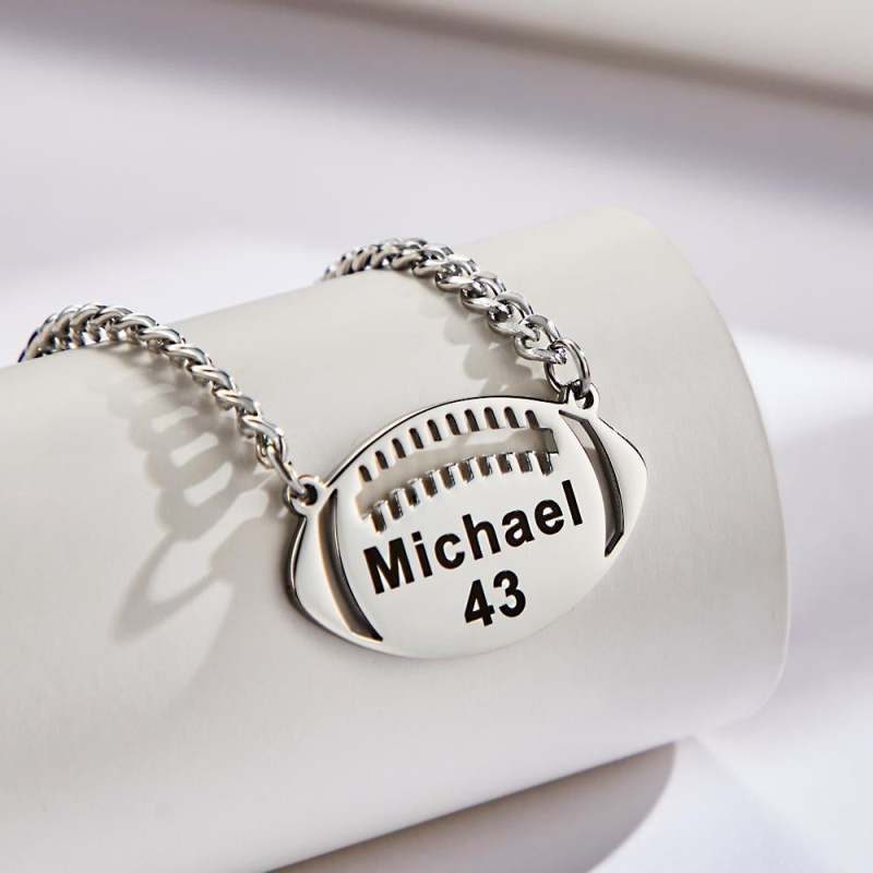 Custom engraved football name necklace nameplate chain give him jewelry gift. The product is shaped like a football. You can customize the text on the football. This necklace has three colors to choose from. You can choose a color you like to customize and give it to your husband. Believe me, he will love this gift very much.