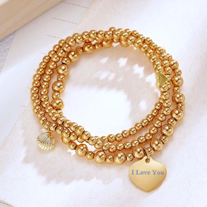 Custom Engraved Hearts of Love Bracelet Stack Metal Gift for Her